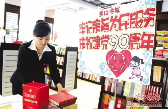 26日,新华书店泰山书城开辟了建党90周年“红色书籍”专柜。《中国共产党90年创新实录》等红色书籍,带领读者走进红色的回忆里。