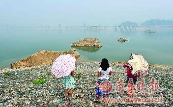 截至5月27日8时,三峡水库坝前水位已降至151.99米,从2010年10月175米蓄水以来,三峡水库已累计为下游补水184.5亿立方米。目前,三峡水库调节库容已消耗了约4/5,剩余的1/5调节库容也将在6月10日前消耗完毕。图为5月27日,游客在观看水位下降后的三峡大坝。 新华社发