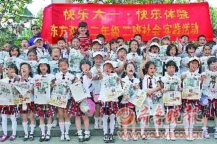 ▲“六一”儿童节来临之际,济南市东方双语实验学校二年级2班全体同学来到泉城公园,进行了主题为“快乐六一、快乐体验”的社会实践、卖报纸活动。