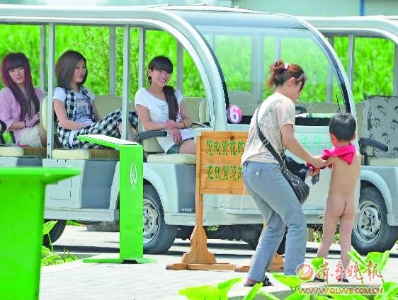 自述:孩子的衣服湿了,换衣时引得旁边游人会心一笑。
