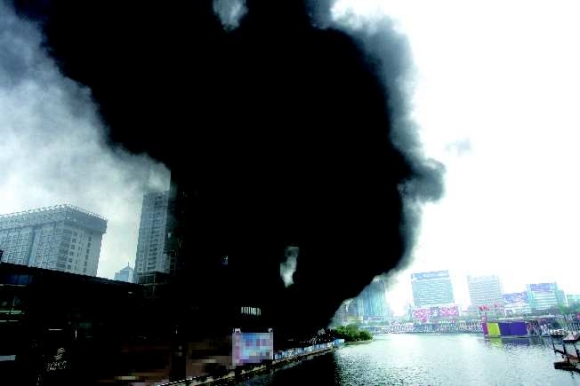 30日中午1点30分,世纪泰华旗下在建楼盘荣观华府的建筑工地上突然冒出滚滚的黑烟,据消防人员介绍,工地上一辆卡车驾驶室突然发生火灾,并且引燃了周边的木料。所幸,起火后,黑烟只是把着附近的墙面熏黑,并没有造成人员伤亡。
