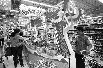 随着端午节临近,粽子也进入销售旺季,商家瞄准时机,将销售粽子的柜台装饰一新,吸引消费者。