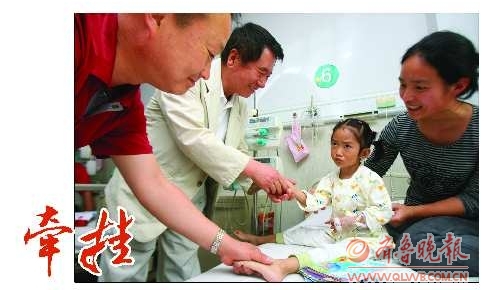 30日,中韩医疗团几位韩国人代表来到青岛市儿童医院看望小子玉,希望子玉早日康复。他们还将为子玉提供一万元的治疗费用。