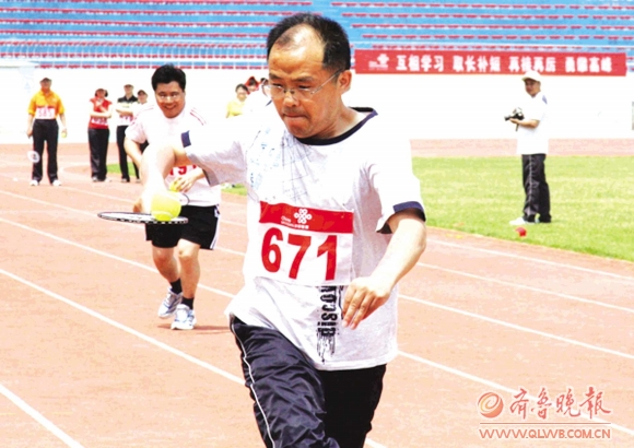 5月28日,泰安联通2011年职工运动会在泰安市体育中心举行,940多名运动员参加了38个项目的比赛。图为运动员们在参加项目。