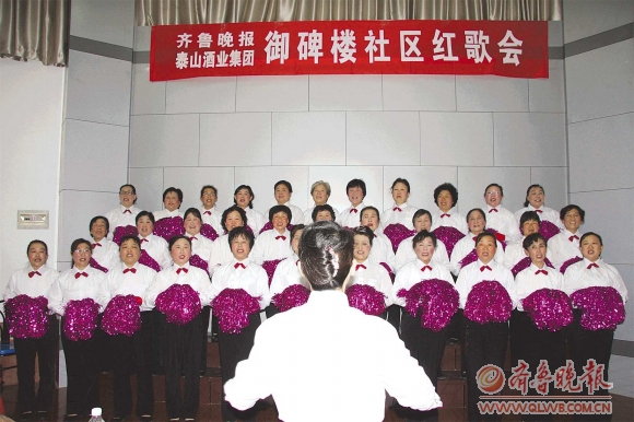 本报泰安5月30日讯27日,本报联合泰山酒业主办的全民红歌会在御碑楼社区举行。御碑楼小学的礼堂里上演老少同唱红歌的场面,来自社区居民与御碑楼小学的小学生们同台唱红歌。