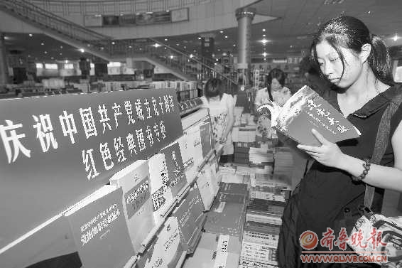 5月30日,几位读者在枣庄市中区青檀路鲁南书城选购红色图书。为庆祝建党90周年,枣庄市各大书城纷纷开设建党90周年“红色书籍”专柜,带领读者走进红色的回忆的同时,也吸引了不少读者到专柜前购买、阅读红色经典图书。