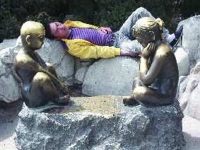 作品描述:两个小孩在对弈,一旁的先生观棋不语,睡得真香。