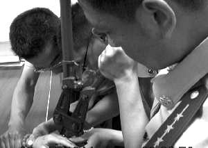 29日23时10分,东营开发区两名小伙子来到东营市消防支队第一中队求救。其中一小伙儿的右手无名指上卡了一枚戒指,手指已经流血。经过认真观察,消防官兵立即使用钳子对戒指两侧进行扩张,在具备一定作业面的情况下,使用剪断钳对戒指进行破拆。十五分钟后,消防官兵成功地将戒指从小伙的手指上取下。