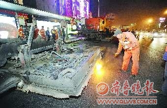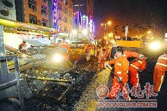 5月30日22时30分,记者来到经十路山大路交叉口,多辆工程车已经在路边停靠。位于最前面的几台大型预热机———HM16“加热王”显得格外引人注目,记者看到,预热机底部两侧全是一米多宽的平整钢板,远远望去,“加热王”像是一个巨大的熨斗。