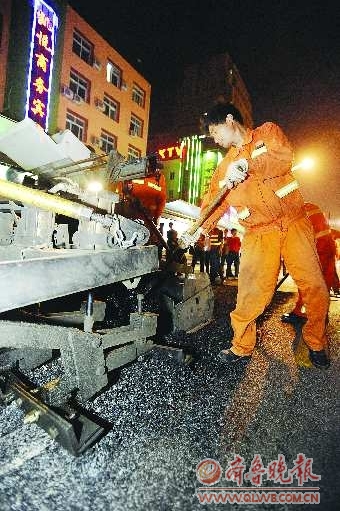 5月31日本报刊登了《经十路启动“修旧如旧”试验》一文,经十路整修将采取就地热再生工艺,实现道路的“修旧如旧”。就地热再生工艺修复经十路上的车辙,这对市区道路来说还是第一次。采用新工艺修复既没有以往大型施工的巨大噪音,也没有来来往往的渣土车,修复后的道路立即变得平整如新。如此“神奇”的技术引起了很多人的好奇:什么叫就地热再生工艺?它究竟是如何修复路面的?30日晚,记者来到经十路,跟随现场施工人员全程体验就地热再生工艺如何给路面穿“新衣”。