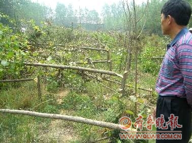 胶南市隐珠镇董家庄村的4户村民种植了10年的近2万棵树木,在5个晚上被人全部偷偷砍断,气愤的村民怀疑此事与村里征地被拒有关。村民说,当地派出所出警5次抓到了砍树的嫌疑人,却把嫌疑人放了,究竟是谁砍的树也不得而知。5月31日,记者对此事进行了调查。