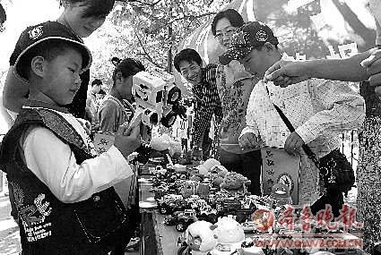 现在的孩子大都积攒了一些已经不喜欢了的玩具、图书以及生活用品。这些物品送人不合适,扔掉很可惜,放在家里又占地方。为解决学生及家长的困扰,让孩子感受换购的快乐,5月28日9时上午本报举办的庆六一换购活动在翠竹小学如期举行,翠竹小学、望岛小学以及周边学校的百余名学生及家长参加了此次活动。换购现场十分火爆,孩子们带来的上千件图书、玩具以及学习用品等摆上了柜台。介绍商品、讨价还价,孩子们不停变换着“顾客”和“售货员”的双重角色,在感受换购快乐的同时,感悟购物心得。有的孩子换完带来的物品后,又跑回家,带来新的宝贝参与换购。