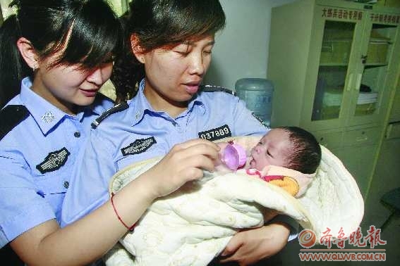 任帅女警官和马警官轮流照顾小家伙。在喂水的时候,两人反复试温度后才给小宝宝喝。年轻的任警官说:“这个小家伙还没有玩具,要是下午还没被送走,我就去买一个小玩具送给他。”