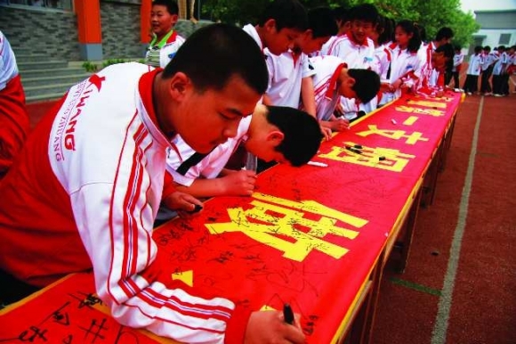 5月31日,临沂第二十二中学全校师生集体宣誓禁烟,并在“拒吸第一支烟”宣传条幅上签上了自己的名字。当日是第24个世界禁烟日。