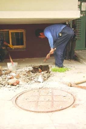 “2007年有一个月,我们楼的污水管道堵了三次,楼下居民就在自家的污水管道上‘打叉’,导致后来管道经常堵塞。”住芝罘里21号楼三楼的杨女士说,在污水管道上打叉的是一二楼的住户。“打叉”就是在原有管道上钻几个十字叉,然后放进去两根钢筋之类的东西,这样十字叉后面的管道就不堵了。污水管道被堵后,下水道老往外冒异味。