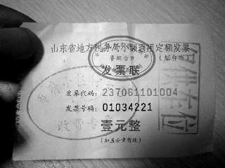 记者向该男子要了一张发票,在这张面值一元的发票上,印有“市府小区停车场收费专章”等字样。