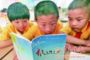 5月31日上午,在济宁霍家街小学,小学生们正在阅读市民文明手册。据了解,为了倡导市民学文明礼仪,给创建全国文明城市尽一分力,济宁市文明办印制了6000余份文明手册,通过学校向孩子们发放,还通过车站、医院等窗口单位向市民发放。
