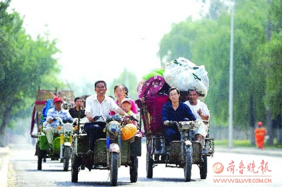 来帮忙搬家的都是和柳恒章一起收废品的老朋友,平日里收废品的三轮车就是搬家的运输工具。“六辆一样的三轮车在路上得多‘拉风’,咱得让老柳这次家搬得风风光光的。”46岁的赵学为说。