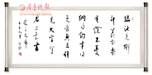 徐超:先生感人的事实很多,你说的这件事的确更感人至深,以至到今天,其中的每个细节我都清晰难忘。书中我写了这样一段话:“我从来就没有把先生的这次创作仅仅看成是翰墨场上的一次馈赠,而是看成最生动的一堂课,从怎么做人、怎么为师、怎么办事的精神和态度等人生大节,到笔墨纸砚的使用和创作的起承转合等每个细节,都无愧典范。它演绎的,是细节决定品质的典范,是钢铁怎样炼成的典范,是身教重于言教的典范。”我等后辈何能及之,何能及之!