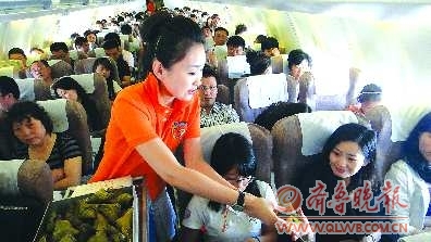 6月6日是中国古老的传统节日端午节。在山航飞往沈阳的SC4989航班上,乘务员端上了热气腾腾的粽子。机舱内的缕缕粽香让乘客们在万米高空度过了一个难忘的端午节。本报记者 杨传忠通讯员 赵学信 摄影报道