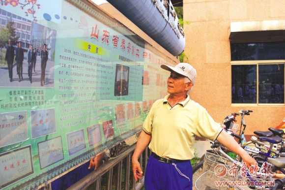 6日下午3点半,距离4点半看考场还有1个小时时间,记者在泰安二中考点发现,一位头发花白的老人推着自行车,一直盯着校门外的宣传栏看,嘴里还念念有词。他告诉记者:“47年前,我就在这里参加高考。”