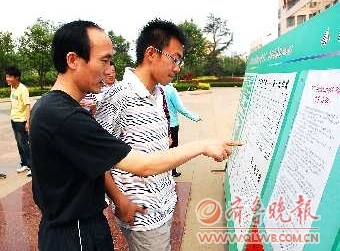 在考试规则公示牌前,不少考生都在忙着仔细阅读考试注意事项和考生守则,查找自己考场位置,部分家长也认真阅读起来,并表示自己做到心中有数,希望到时候孩子紧张而忘记的时候能够提醒一下。