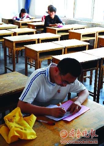 “在自己的座位上坐坐,熟悉一下环境,随便写点东西,找找感觉,到真正考试的时候自己就不会太紧张了。”前来看考场的李霖边在白纸上写东西边说道。