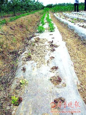 付艳介绍,这片地总共一亩,5月3日种上了花生。可到了发芽时,别人家的苗长势很好,自家的苗全都发白,不但没长高,反而枯萎了。而她和其他人用的是同一批花生种。