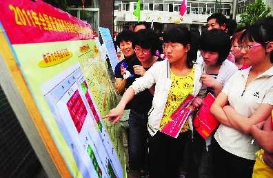 6月6日下午6点,临沂九中考点考生在看考场分布情况。