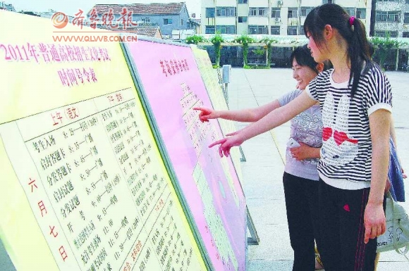 6日,“十年寒窗”的考生们纷纷来到各自的考场“踩点”,熟悉行车路线、考场环境等。一些考生在接受记者采访时表示,目前状态很好,7日将“笑迎高考”。图为考生查看考场分布图。