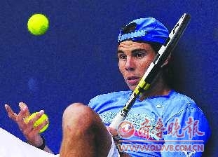 6月6日,2011年英国女王杯草地网球赛开赛。首轮轮空的英国选手默里和刚刚获得法国网球公开赛男子单打冠军的西班牙选手纳达尔在女王网球俱乐部的中心球场进行比赛前的适应性训练。选手们借此比赛,也为两周后举行的四大满贯赛事之一的温布尔登网球公开赛进行热身。图为纳达尔在训练中休息。 新华社发