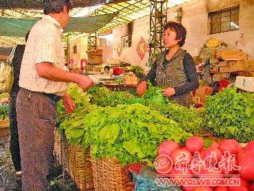 图为6月7日,一市民正在石臼市场选购蔬菜。 本报记者 姜海姣 摄影报道