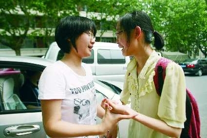 7日中午,记者在三中门前见到了姐姐徐超。果然,一头短发、比妹妹略胖。记者随同徐岩和徐超来到烟台二中。姐妹俩一见面就讨论起来。虽然姐姐是文科生,妹妹是理科生,但是两人都想在大学里研究经济学。心目中的理想大学是哪里?两人的回答也是一致的,“现在还没有具体的目标,出了成绩再说吧。”