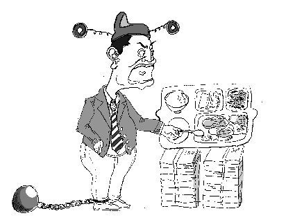 漫画:王小涵 重庆市綦江县某村村主任廖德云于2010年2月被群众揭发其在拆迁征地中索贿13万元的行为,检察院对廖德云立案侦查。在审讯后廖德云拒绝吃食堂餐,称其是给街头下力人吃的饭。据悉廖德云做村主任多年,平时衣着时尚,出手十分阔绰。(重庆晚报)