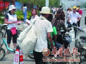 昨天是高考第一天,考试一结束,涌向考生的主要是家长,而比家长还要积极的却是那些散发有关招生、培训等内容广告传单的人,考生想躲都躲不开。而一些捡废品者当天也收获颇丰。