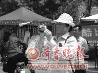 前几天,安先生就商量着要陪送孙女考试,安先生的儿子考虑到天气热,怕累着老人,安先生的要求没有实现。今天早上安先生8点钟就赶到了孙女考试的地点,用手中的DV记录下这一时刻,算作是给孙女的一件礼物。