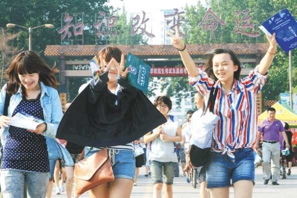 7日下午5点,聊城二中考点,考生们结束高考首日考试,陆续走出考场。见到记者镜头,两名考生自信地笑起来,摆出“胜利”的手势。