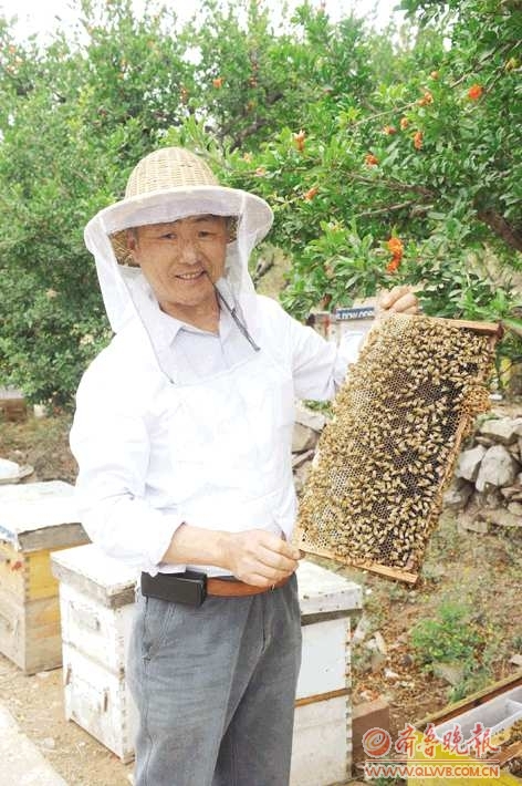 在枣庄市峄城区石榴园,江苏盐城的一名养蜂专业户准备采蜂蜜。自5月下旬开始,有“中国石榴之乡”美誉的山东省枣庄市峄城区12万亩石榴花竞相开放,吸引众多游客观赏,来自江苏、安徽等地的养蜂专业户也在此放养蜜蜂。据悉,第三届中国·枣庄峄城榴花节将于6月10日开幕。