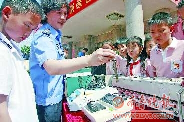 6月8日,工作人员正在为学生们现场做环境监测实验。当日,槐荫区环保局为南辛庄小学送来了全套环境监测实验设备,该设备可以随时对水样、空气、土壤等进行检验分析。
