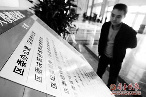 在这座铺着大理石地板的建筑物里,如果你想去妇联办事儿,则需走进一个挂着“社会工作部”门牌的办公室。这个部门囊括了工青妇、残联、民族宗教和民政等多个机构的职能。区委副书记周志坤笑称,这里管理着一个“小政府”,范围“从老到幼、从男到女、从健全人到残障者、从天(宗教)到地、从党内到党外、从国内到国外(侨务)”。
