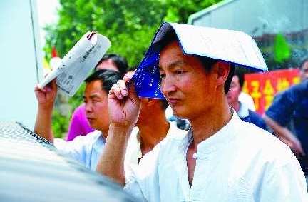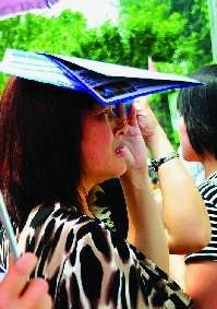 从6日开始,临沂已经持续两天30℃以上的高温天气,8日达到最高。8日上午11时,距离考试结束还有30分钟,记者看到不少学生家长用扇子、报纸、宣传单遮挡烈日,尽管酷热难耐,但家长们依然默默地翘首期盼。