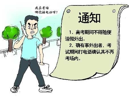 学校怎样对在校学生进行严格管理呢?郑浩栋说,主要通过点名的方式,每天早晚各一次。对确实有事外出的,老师会在高考每场考试期间和学生联络,比如6月7日语文考试(9:00-11:30)期间,老师会给离校学生打电话,确保这名学生在此期间保持通话畅通,并能听到对方的声音,以保证离校生没有在考场内。如电话打不通,则要上报学校。