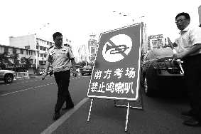 8日下午,在烟台三中考点附近的禁止鸣笛路段,两名司机因为鸣笛被交警二大队民警查获。据了解,这两名司机不扣分,但是将被扣罚50元。