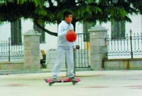 作品描述:这个孩子又玩滑板,又打篮球,佩服!