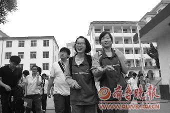 8日高考第二天,威海一中的理科考生们心情不错,理综和英语难度都不大,许多考生面带微笑走出考场。
