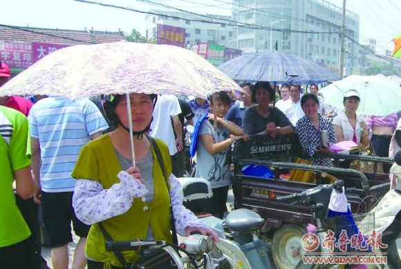 面对干热的天气,在考点外陪考的家长,有的撑起了阳伞,有的用外衣遮住头顶,纷纷采取措施防暑降温。当日,菏泽市区的春蕾小学等一些学校,为帮助孩子们避暑,教室里的空调也都已打开。