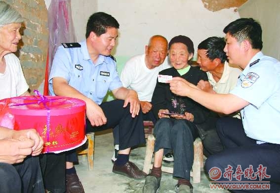 本报定陶6月8日讯(见习记者 景佳 通讯员 朱建英) 8日是定陶县张湾镇杨爱荣老人的百岁生日,定陶县公安局张湾派出所民警为她送来了一份特殊的生日礼物———一本为她新补录的户口簿和二代身份证。
