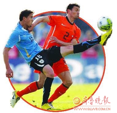 在8日进行的一场国际足球热身赛中,主场作战的乌拉圭队通过点球大战以4:3击败荷兰队,报了去年世界杯半决赛负于对手的一箭之仇。图为荷兰队球员博拉鲁兹(右)与乌拉圭队球员拉米雷斯拼抢。 新华社发