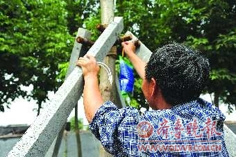 本报6月9日讯(记者 殷亚楠) 大树打吊瓶,你见过吗?省城天气持续干燥,为使刚栽种不久的大树得到更好的营养,历下区园林部门的工作人员就给凤山路上的400棵大树挂吊瓶。