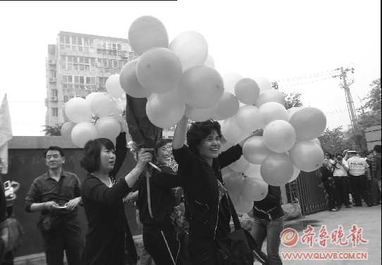 在1中考点,家长准备了气球迎接学生。本报记者杨宁 张晓鹏 摄